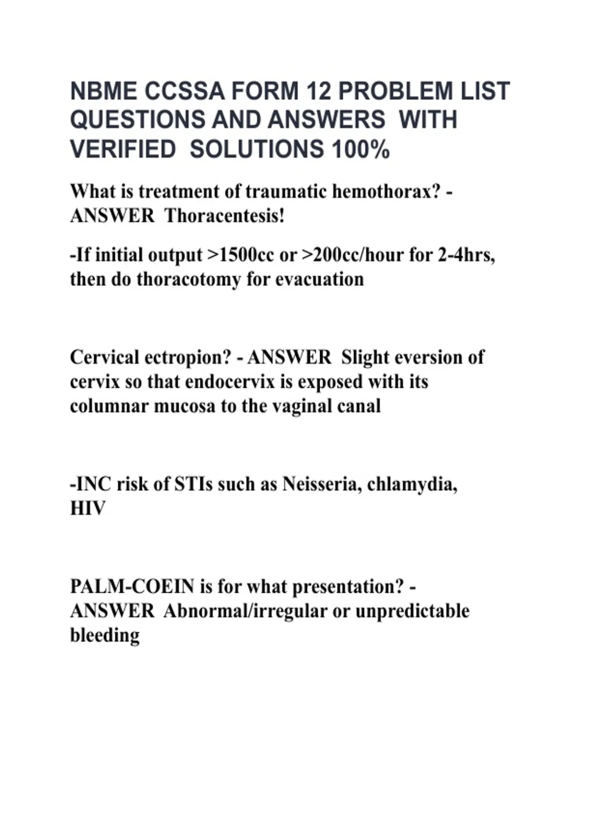 NBME CCSSA FORM 12 PROBLEM LIST