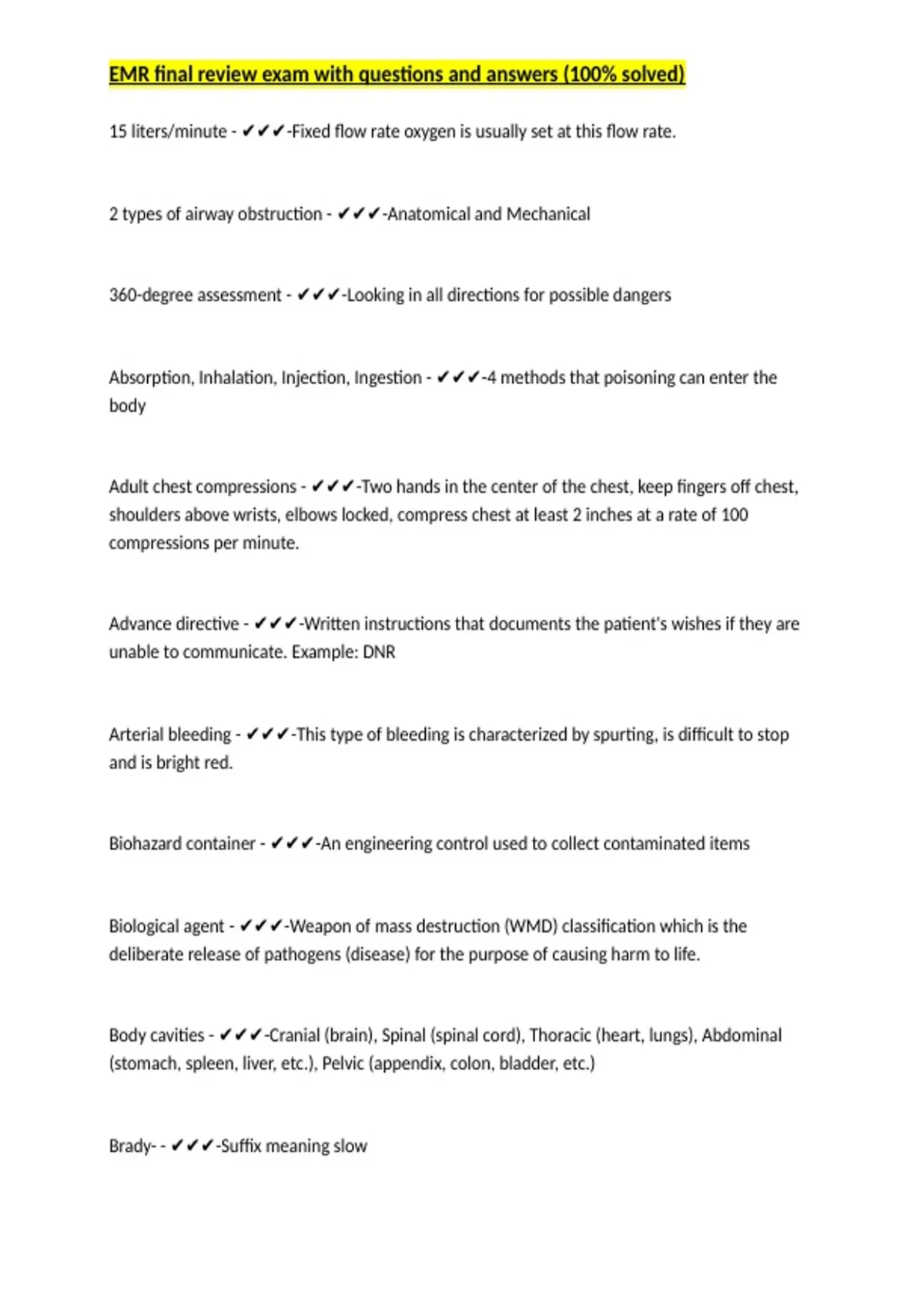 , EMR final review exam with questions and answers (100% solved)