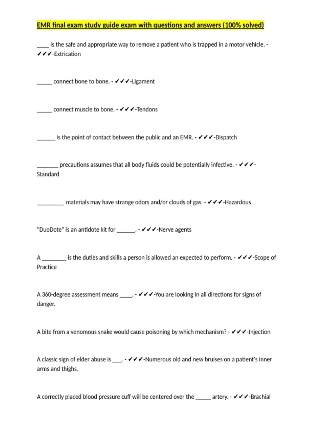 , EMR final exam study guide exam with questions and answers (100% solved)