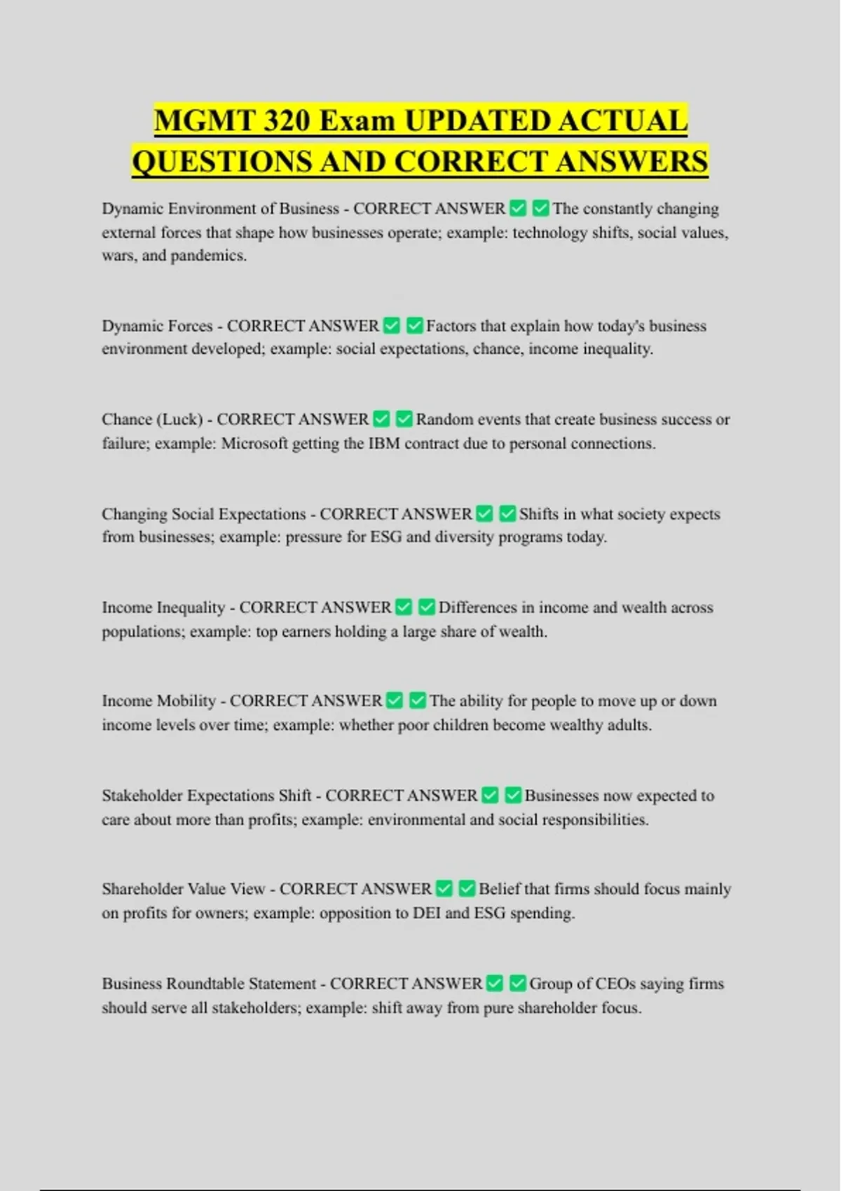 Stakeholder Expectations Shift - CORRECT ANSWER Businesses now expected to