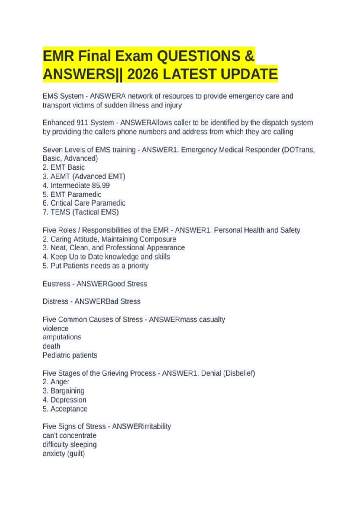 Five Roles / Responsibilities of the EMR - ANSWER1. Personal Health and Safety