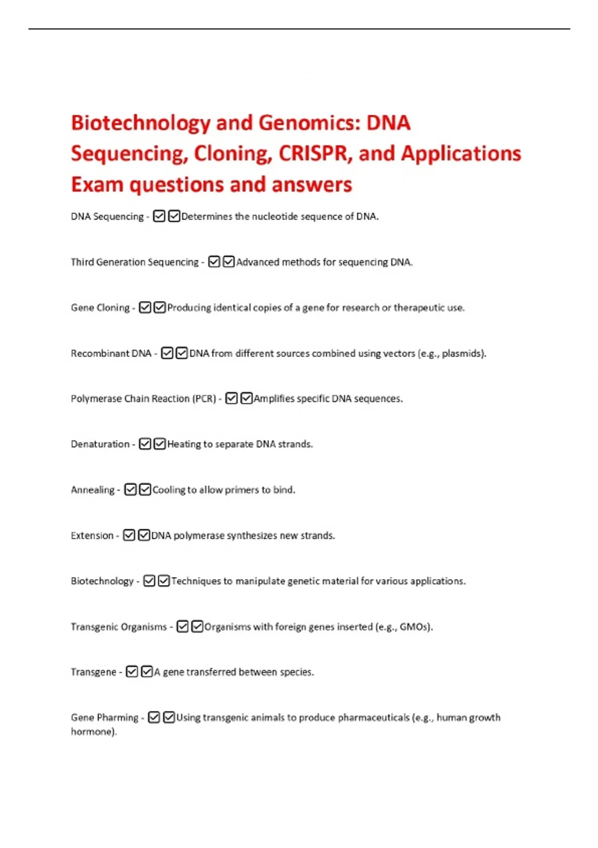Biotechnology and Genomics: DNA Sequencing, Cloning, CRISPR, and Applications Exam questions and answers