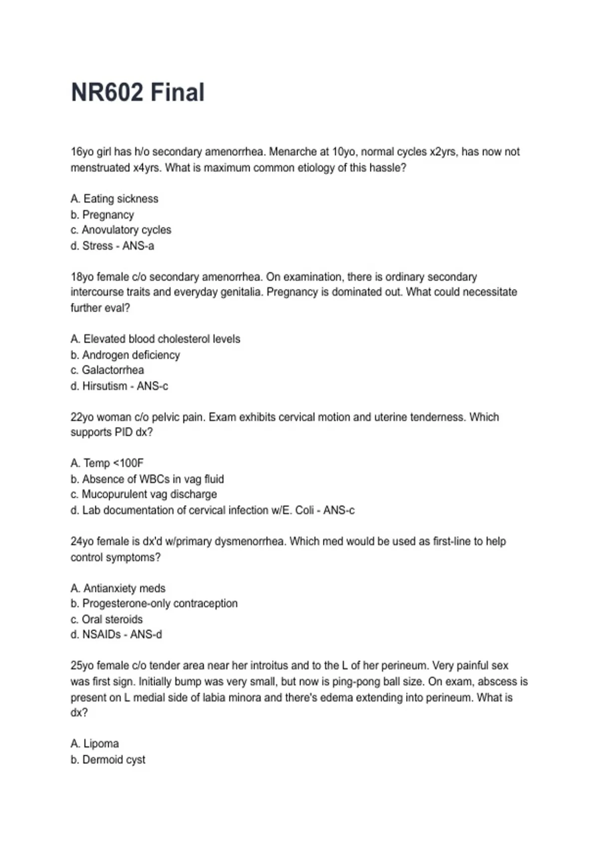 d. Gonorrhea - ANS-a