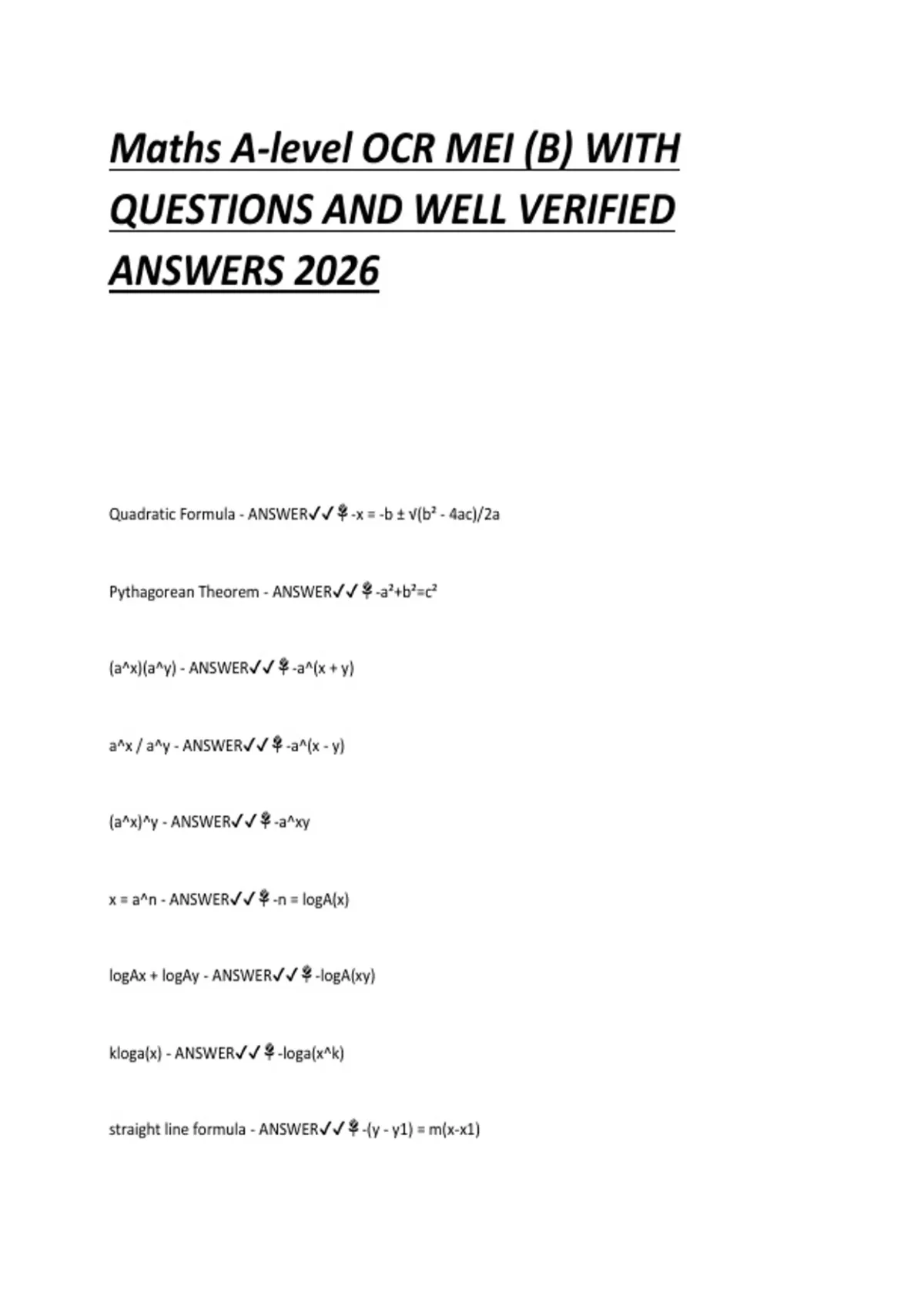 Maths A-level OCR MEI (B) WITH QUESTIONS AND WELL VERIFIED ANSWERS 2026