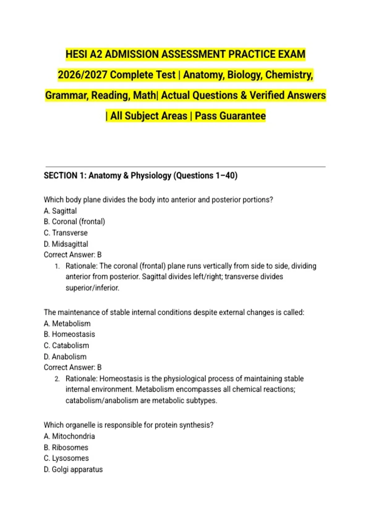 2026/2027 Complete Test | Anatomy, Biology, Chemistry,