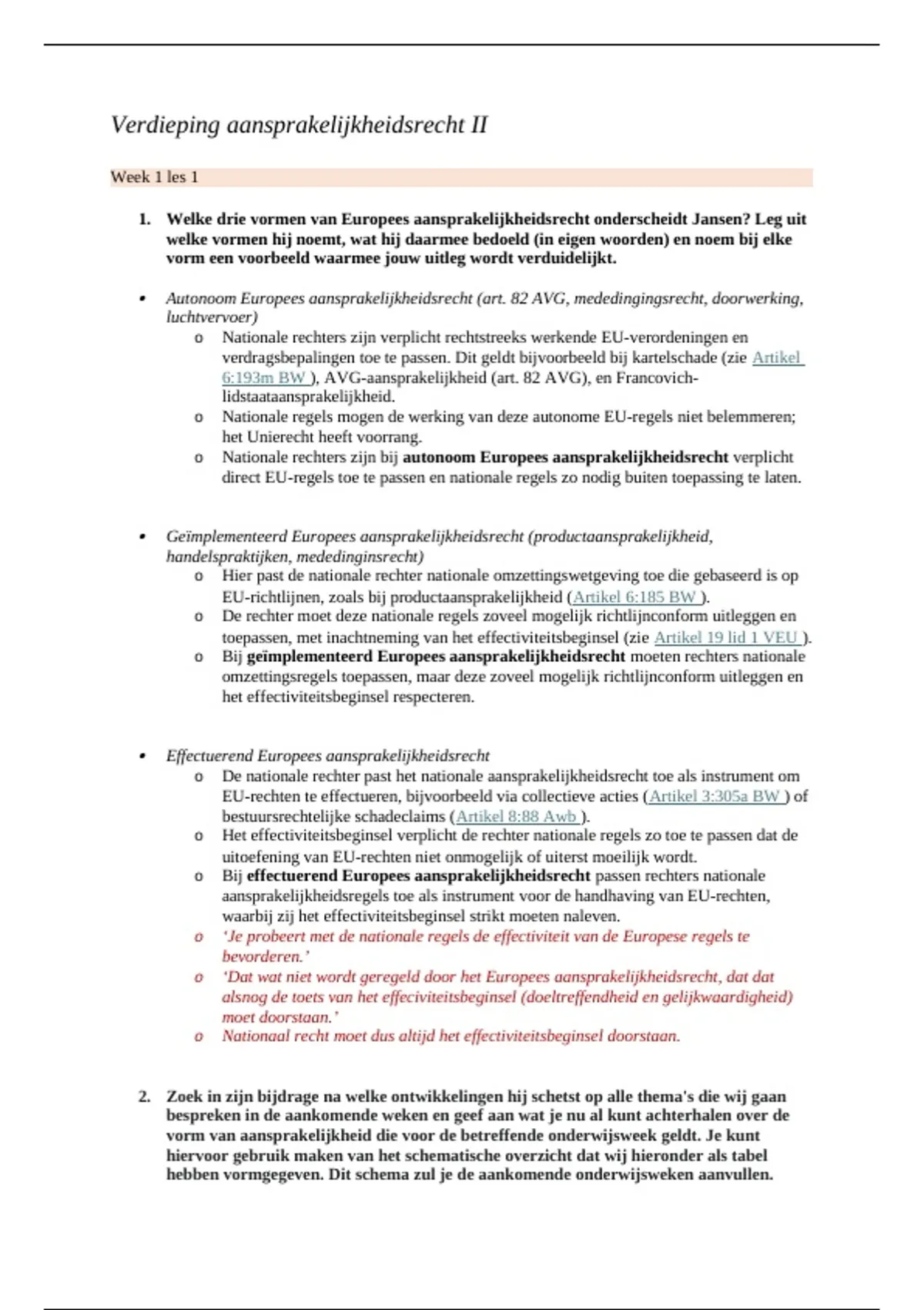 1. Welke drie vormen van Europees aansprakelijkheidsrecht onderscheidt Jansen? Leg uit