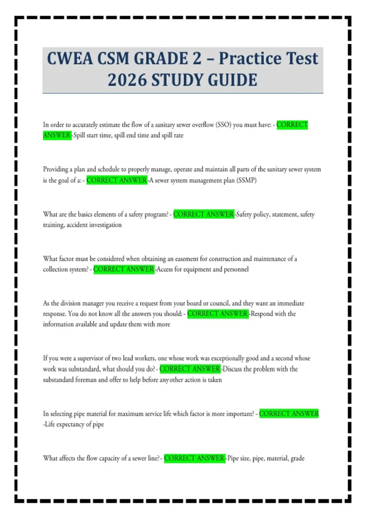 CWEA CSM GRADE 2 – Practice Test 2026 STUDY GUIDE