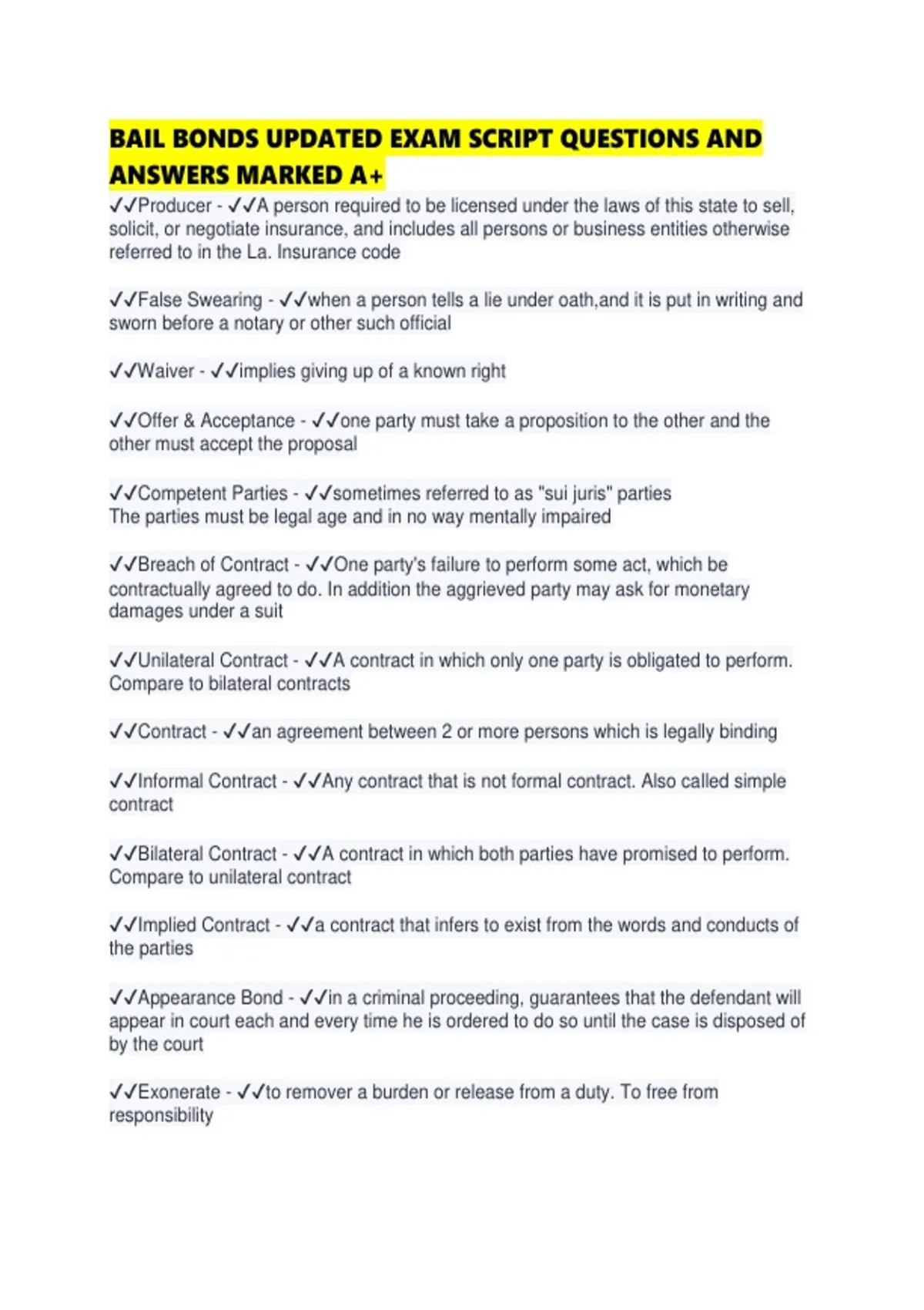 BAIL BONDS UPDATED EXAM SCRIPT QUESTIONS AND
