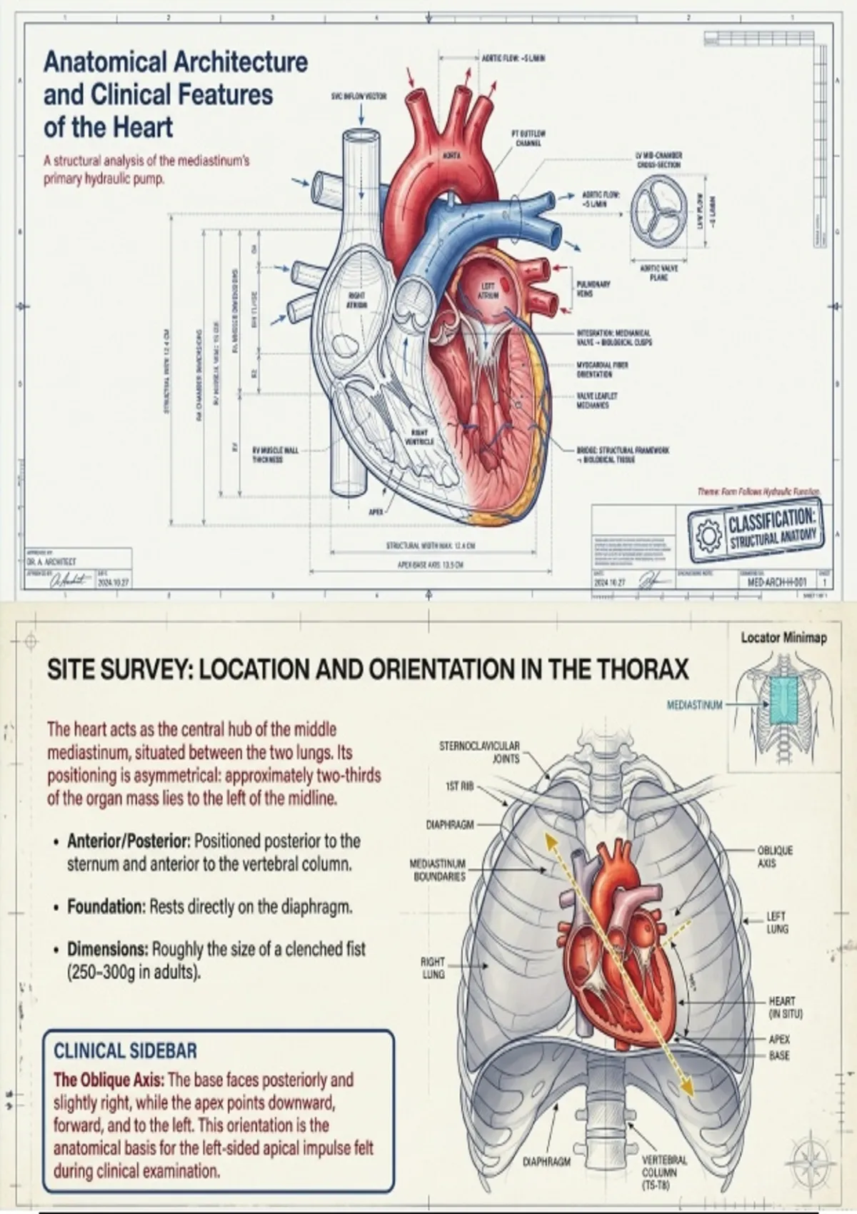 Cardiac Structure: Detailed Anatomy of the Human Heart – High-Yield Notes for Medical, Nursing & Biology Students Comprehensive yet concise notes on the structure of the human heart. Perfect for MBBS, BDS, Nursing, BSc Anatomy & Physiology, or pre-med exams. What's included: Layers of the heart wall (epicardium, myocardium, endocardium) Pericardium (fibrous & serous layers, pericardial cavity) Four chambers (right/left atrium & ventricle) with key features Heart valves (AV: tricuspid & mitral; semilunar: pulmonary & aortic) + chordae tendineae & papillary muscles Blood flow pathway (step-by-step: vena cava → lungs → aorta) Important clinical/anatomical notes (cardiac skeleton, coronary circulation, apex/base) Bullet-point format for quick revision. Ideal for exams, viva, or quick reference. Add your own labeled diagrams (cross-section, valves, chambers) when uploading for maximum appeal. Level: Undergraduate medical/biology Language: English High-yield, exam-focused content.