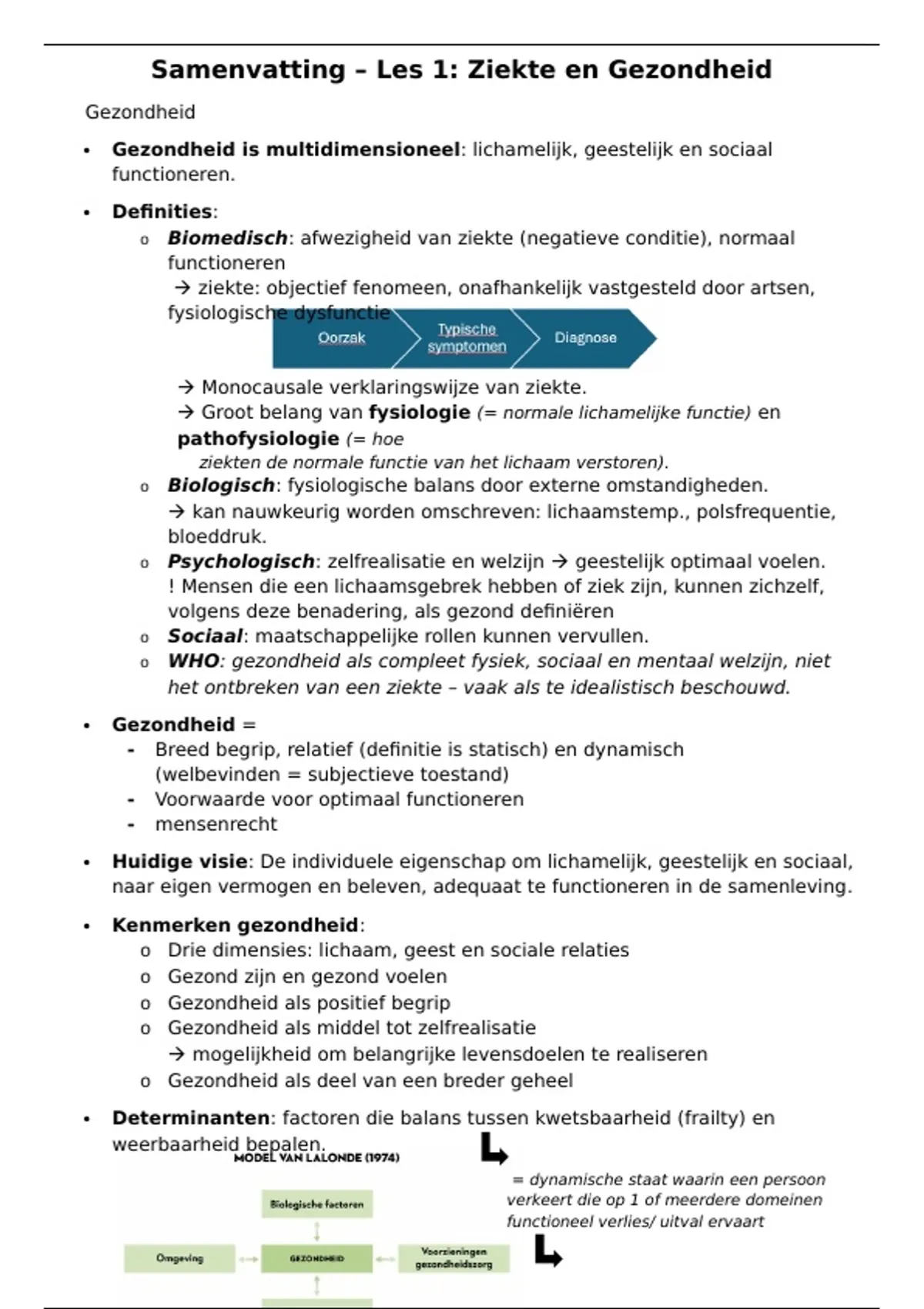Samenvatting – Les 1: Ziekte en Gezondheid
