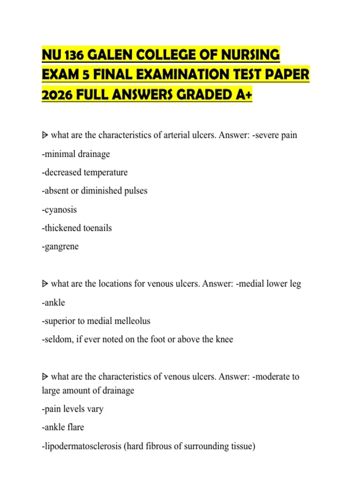 NU 136 GALEN COLLEGE OF NURSING EXAM 5 FINAL EXAMINATION TEST PAPER 2026 FULL ANSWERS GRADED A+