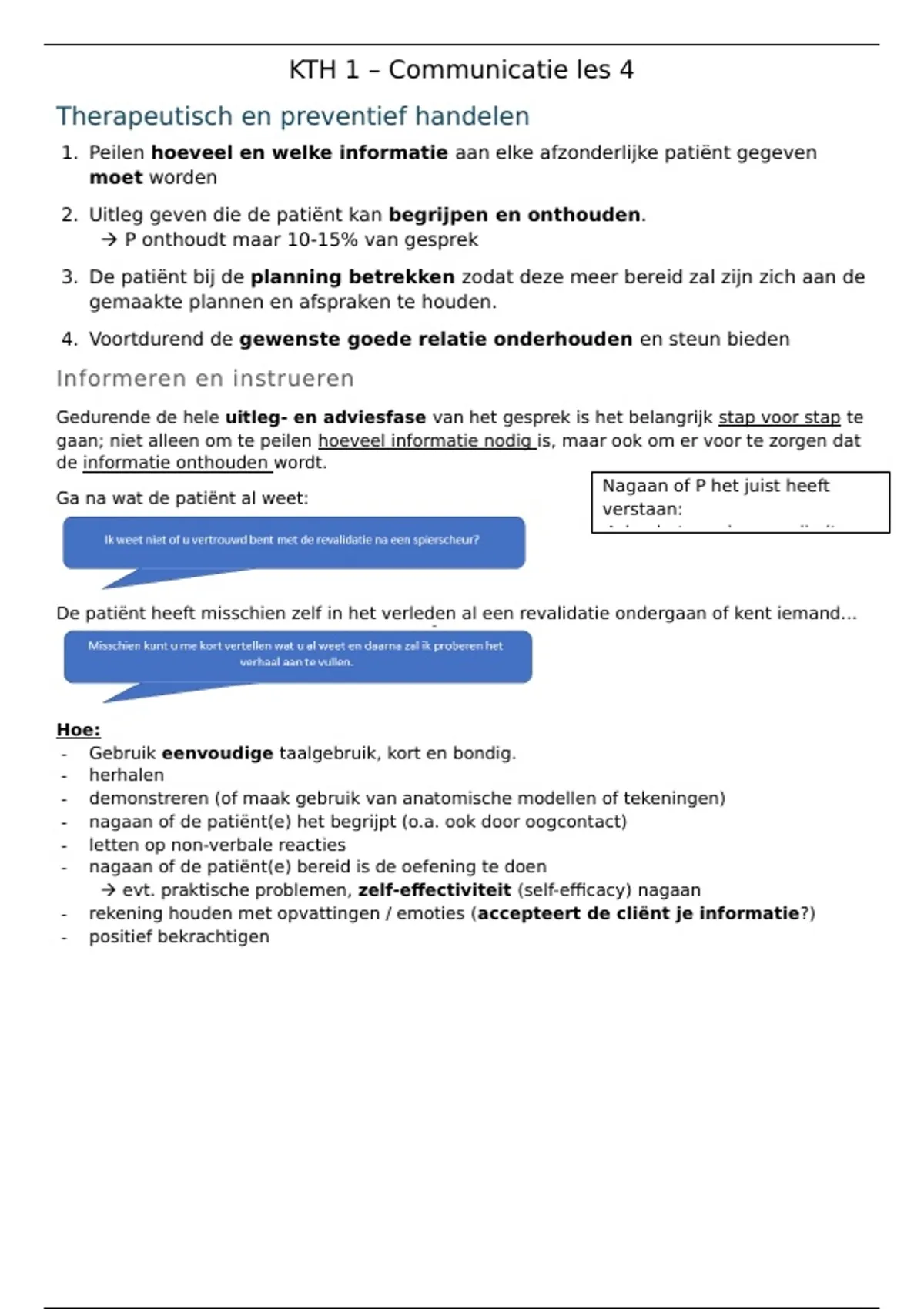 2. Uitleg geven die de patiënt kan begrijpen en onthouden.