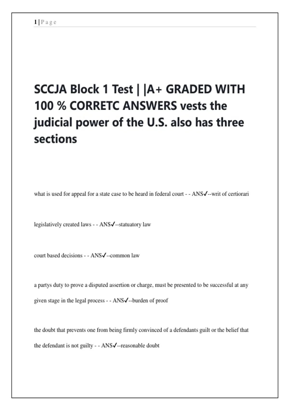 SCCJA Block 1 Test | |A+ GRADED WITH