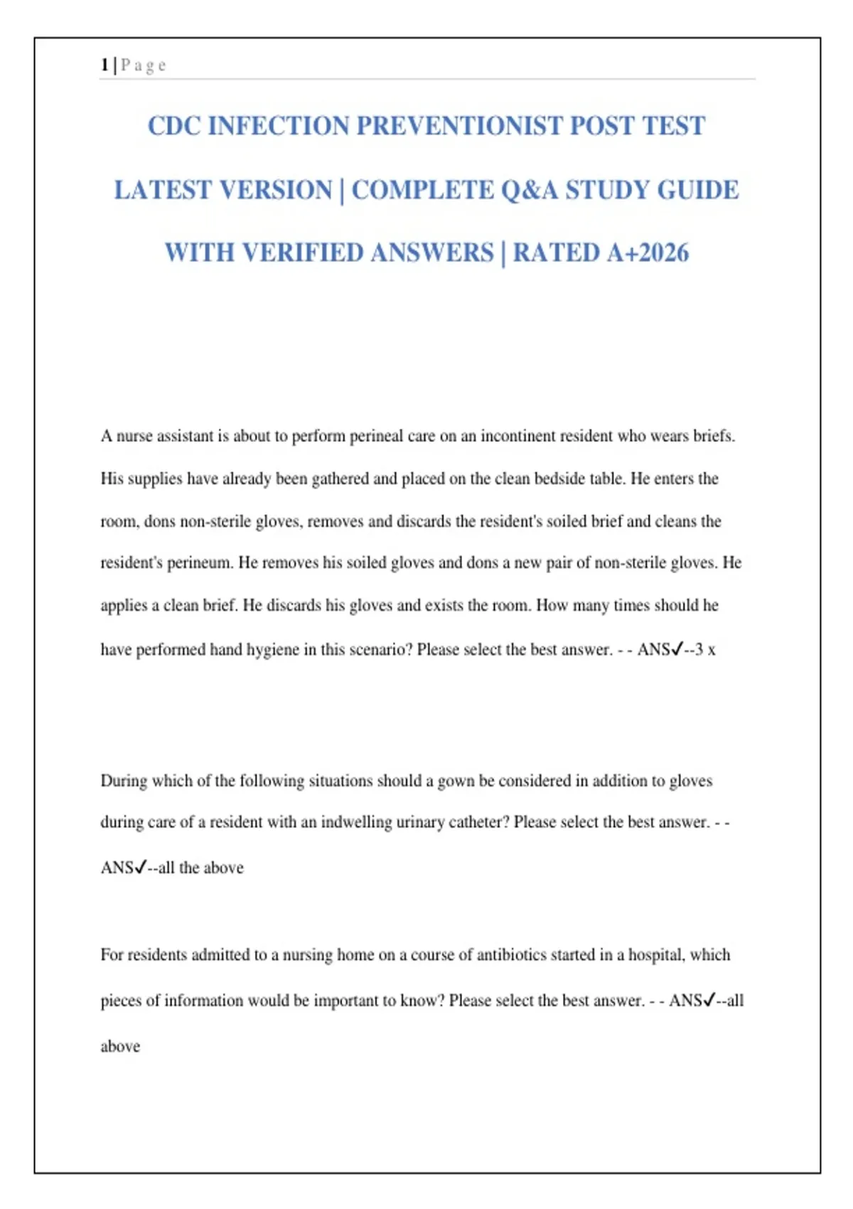 CDC INFECTION PREVENTIONIST POST TEST LATEST VERSION | COMPLETE Q&A STUDY GUIDE WITH VERIFIED ANSWERS | RATED A+2026