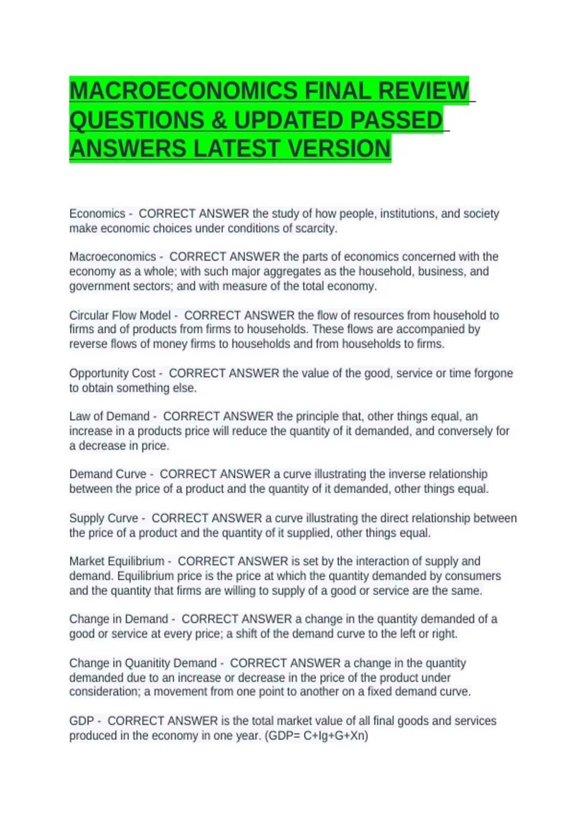 MACROECONOMICS FINAL REVIEW QUESTIONS & UPDATED PASSED ANSWERS LATEST VERSION