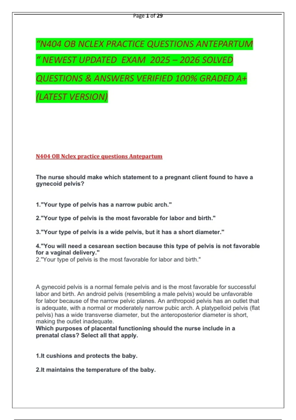 “N404 OB NCLEX PRACTICE QUESTIONS ANTEPARTUM
