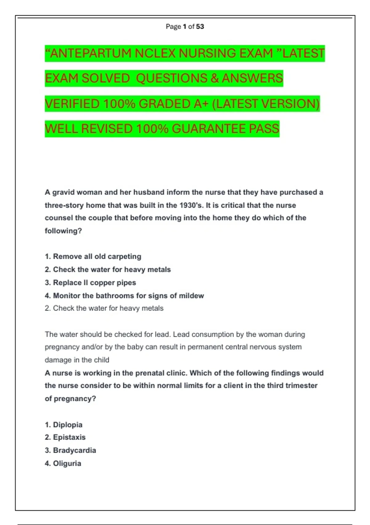 “ANTEPARTUM NCLEX NURSING EXAM ”LATEST
