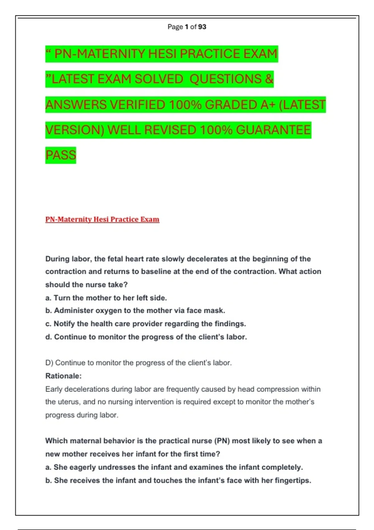 “ PN-MATERNITY HESI PRACTICE EXAM