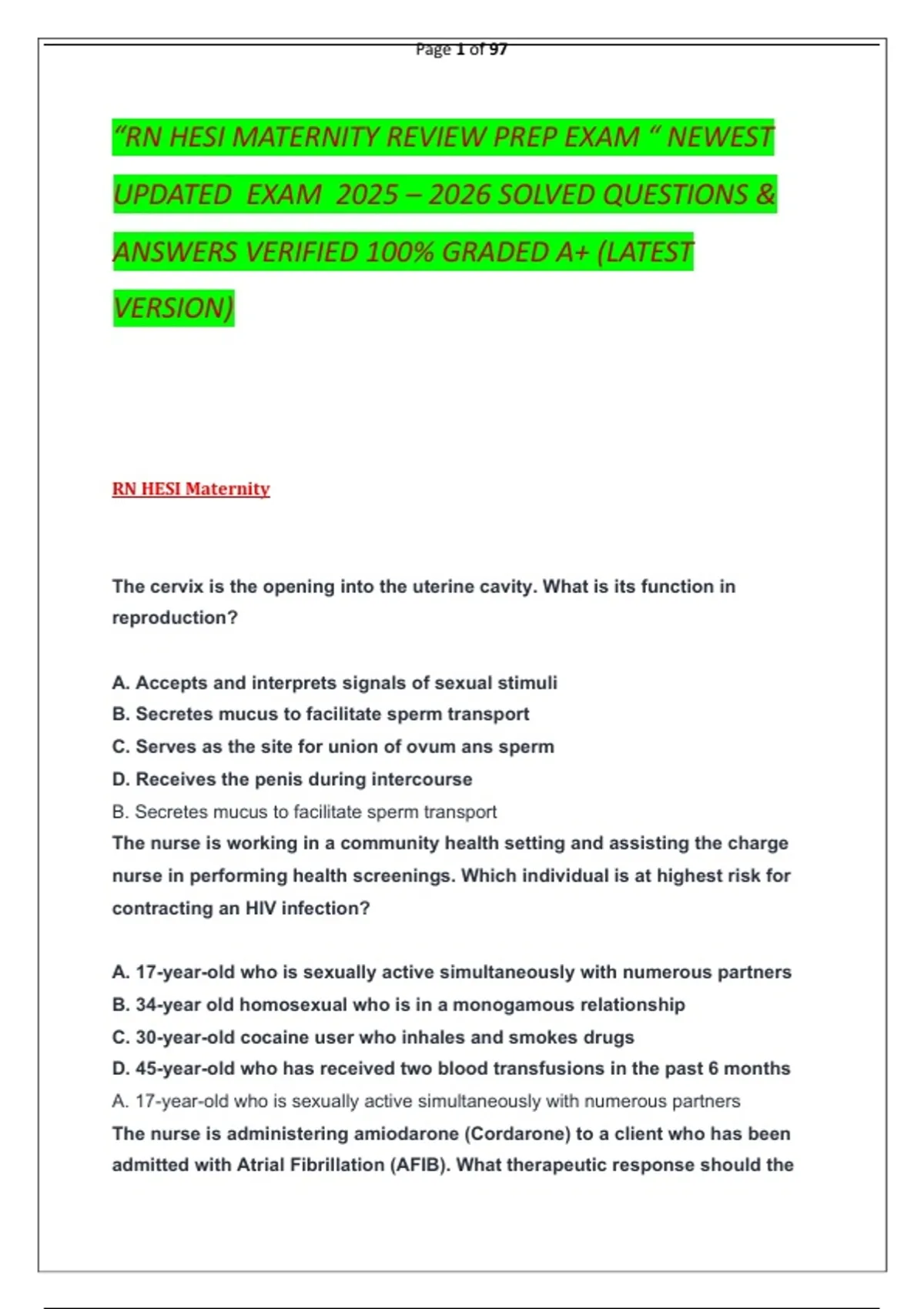 “RN HESI MATERNITY REVIEW PREP EXAM “ NEWEST