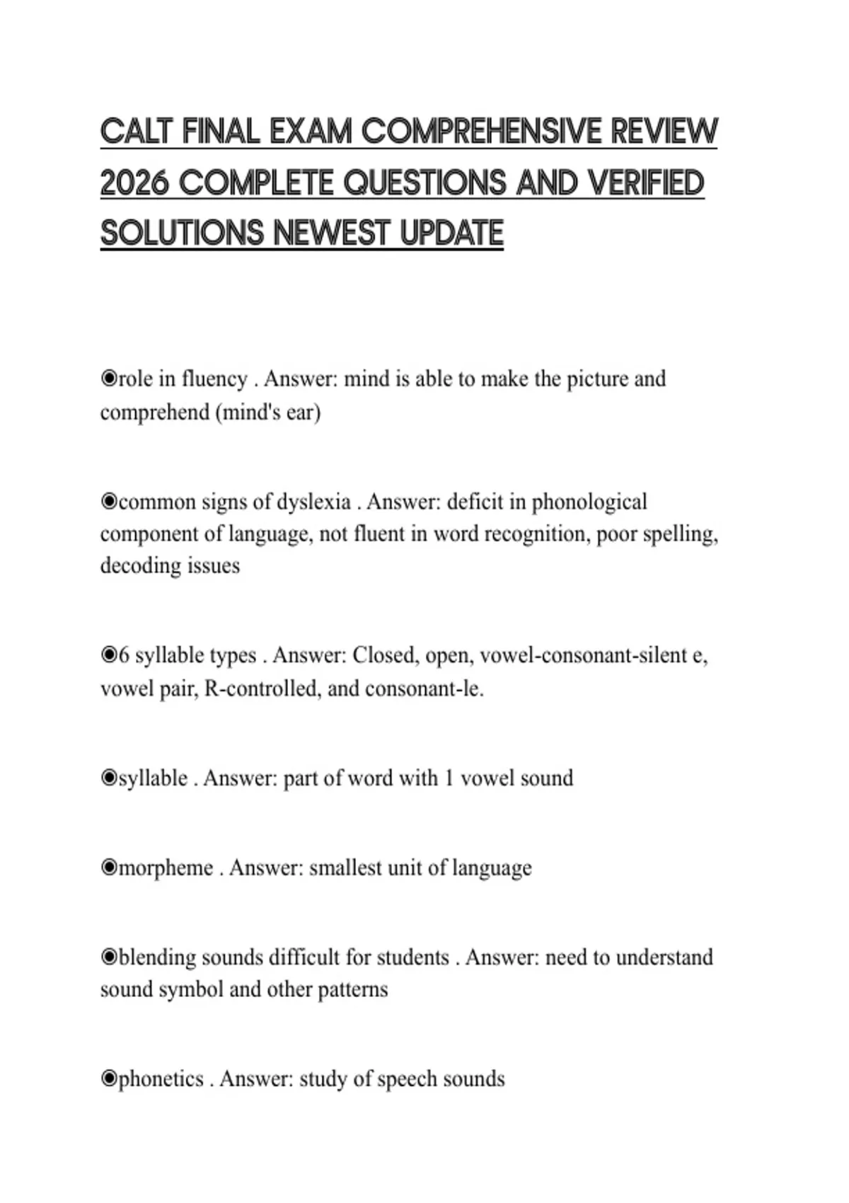 2026 COMPLETE QUESTIONS AND VERIFIED