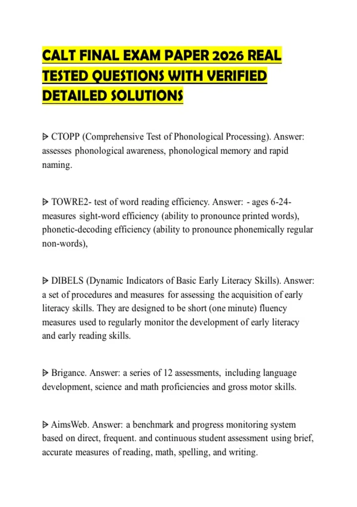 ⩥ TOWRE2- test of word reading efficiency. Answer: - ages 6-24-