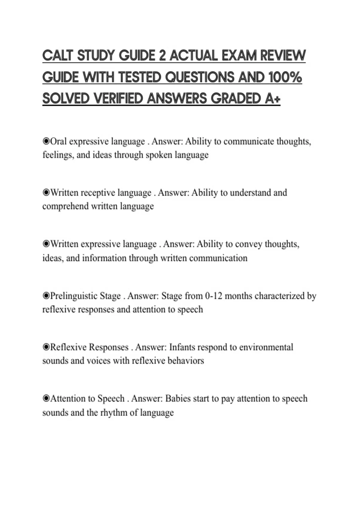 ◉Prelinguistic Stage . Answer: Stage from 0-12 months characterized by