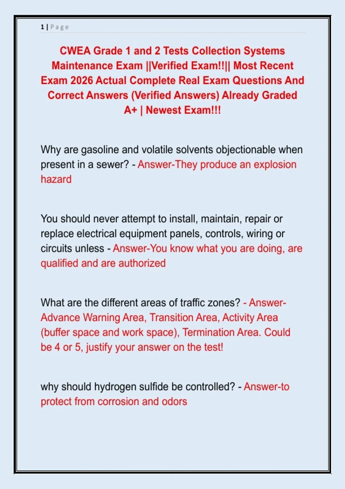 CWEA Grade 1 and 2 Tests Collection Systems