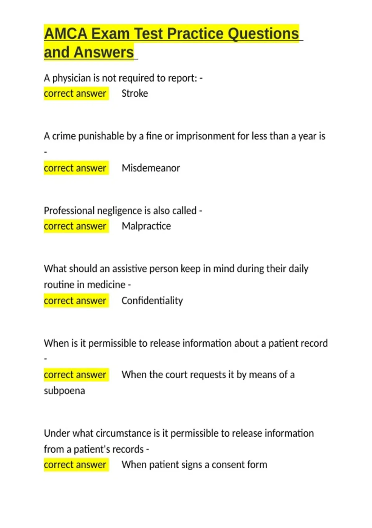 ,AMCA Exam Test Practice Questions