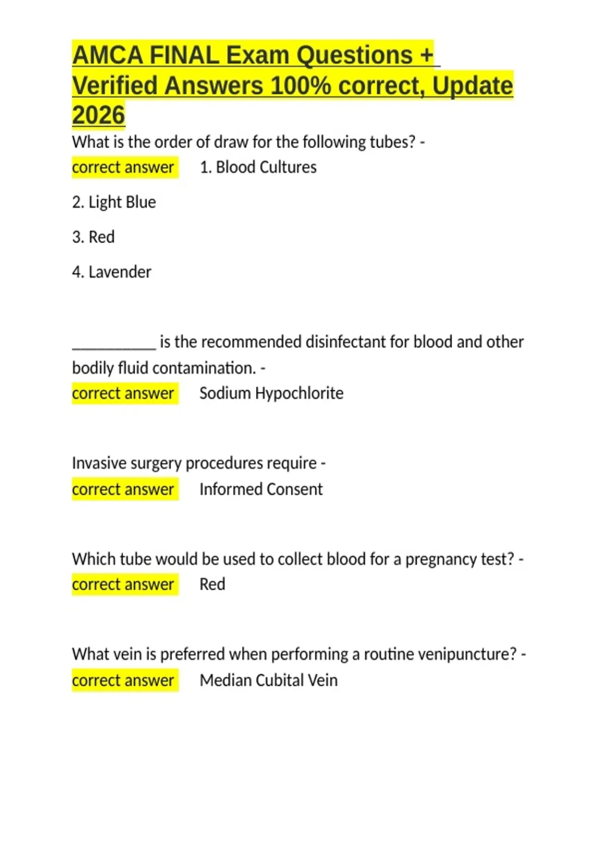 AMCA FINAL Exam Questions + Verified Answers 100- correct, Update 2026.docx