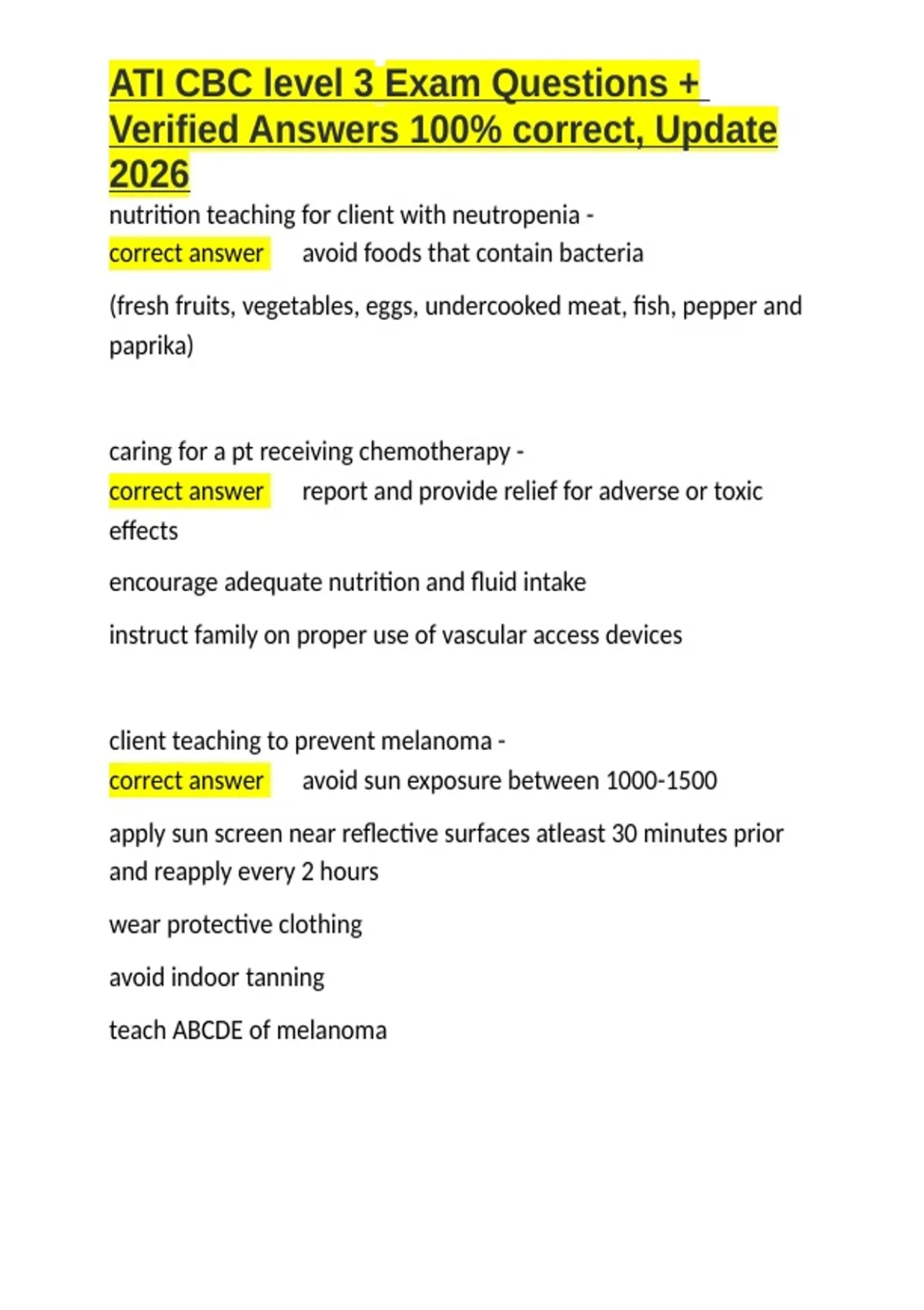, ATI CBC level 3 Exam Questions +