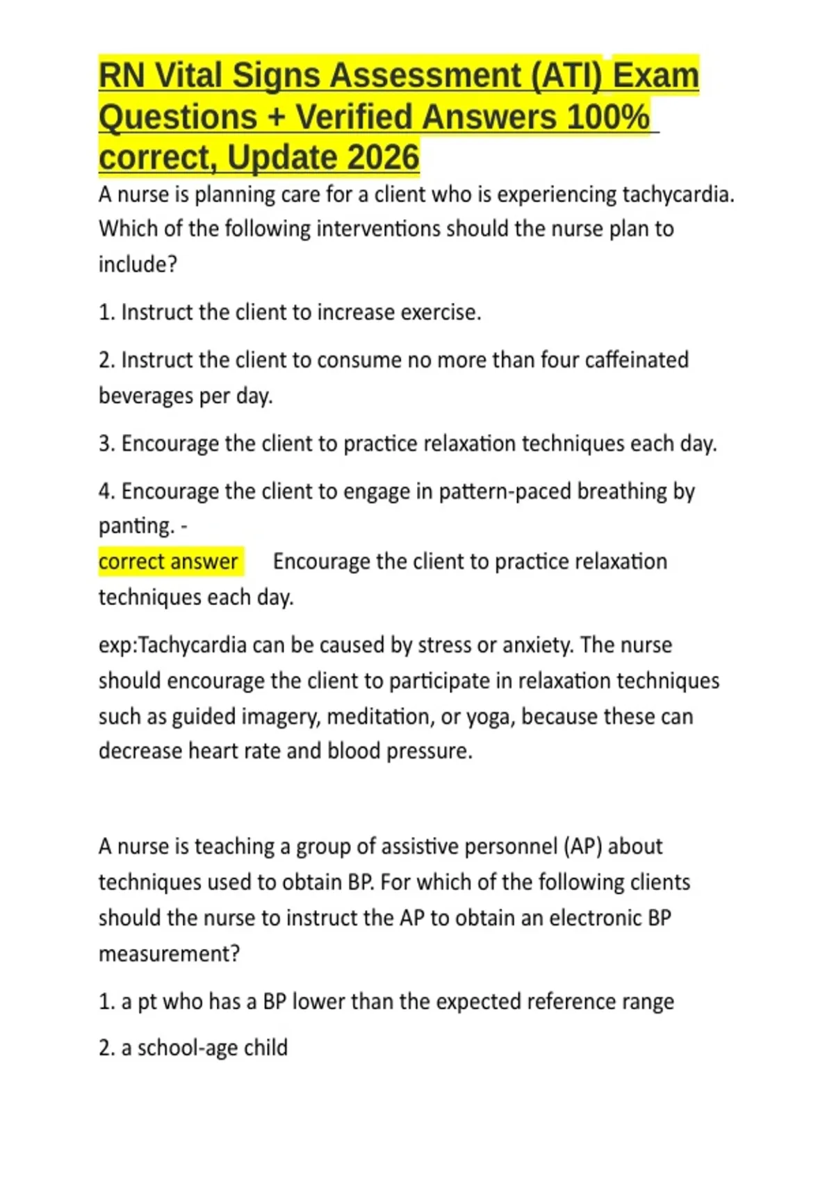 , RN Vital Signs Assessment (ATI) Exam