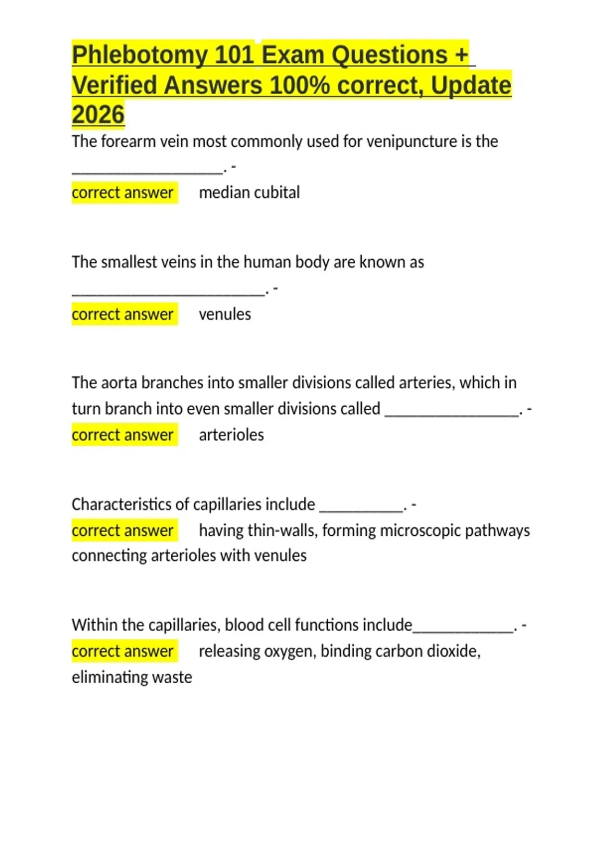 Phlebotomy 101 Exam Questions + Verified Answers 100- correct, Update 2026.docx