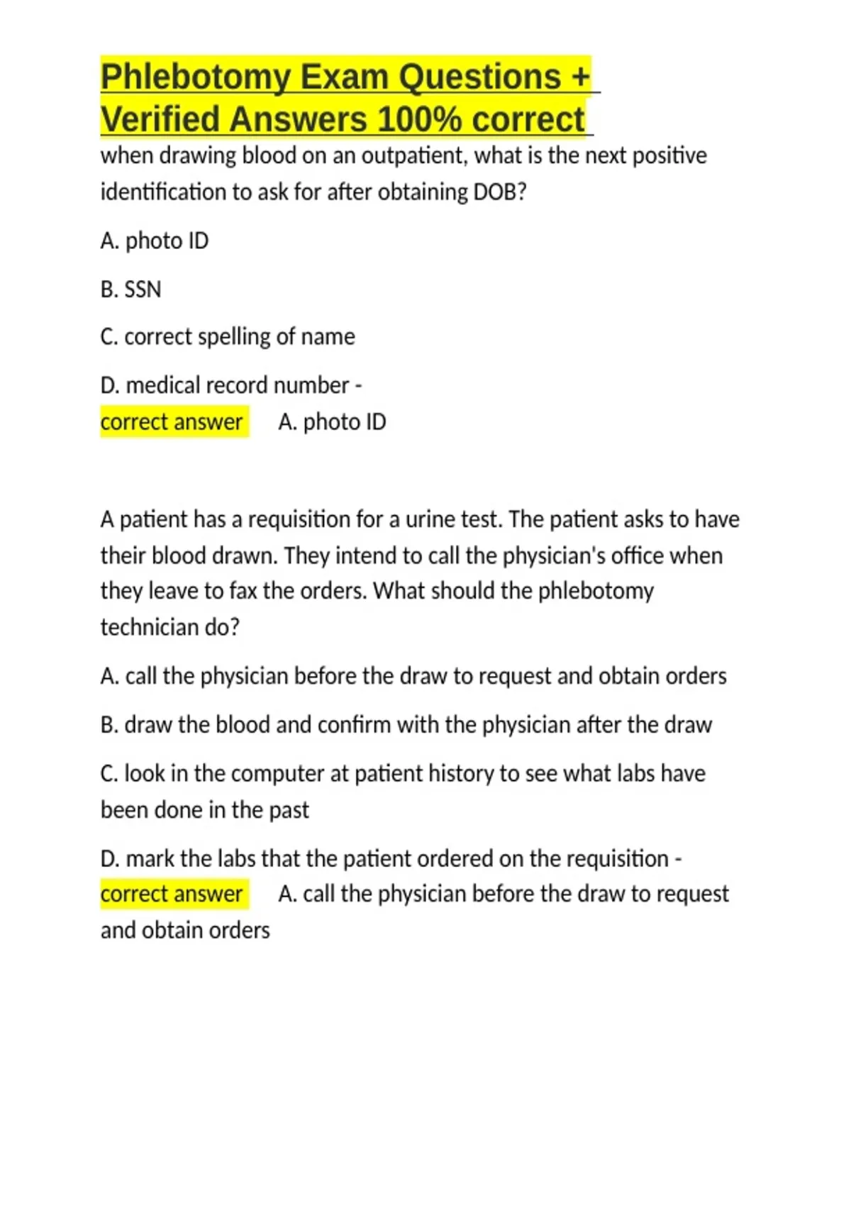 Phlebotomy Exam Questions + Verified Answers 100- correct.docx
