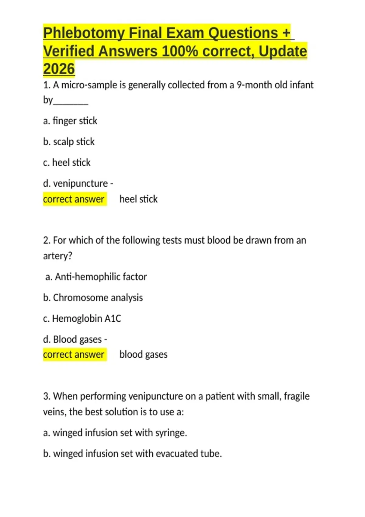 Phlebotomy Final Exam Questions + Verified Answers 100- correct, Update 2026.docx