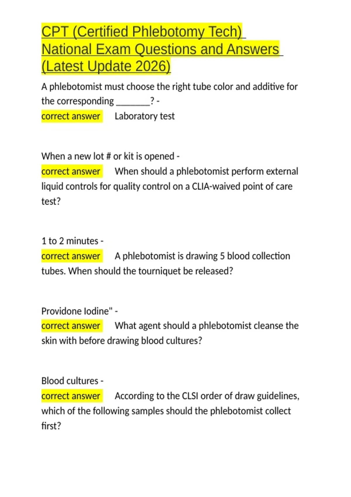 correct answer ✅What agent should a phlebotomist cleanse the