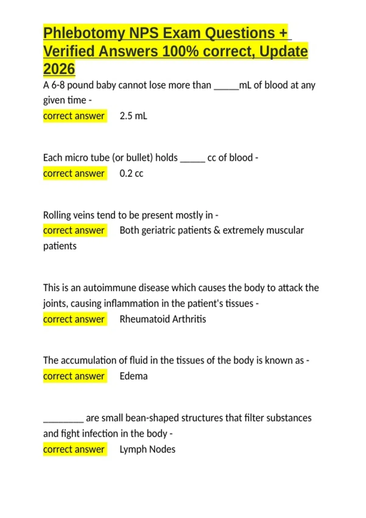 , Phlebotomy NPS Exam Questions +