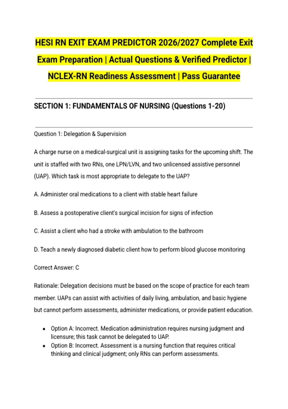 HESI RN EXIT EXAM PREDICTOR 2026/2027 Complete Exit