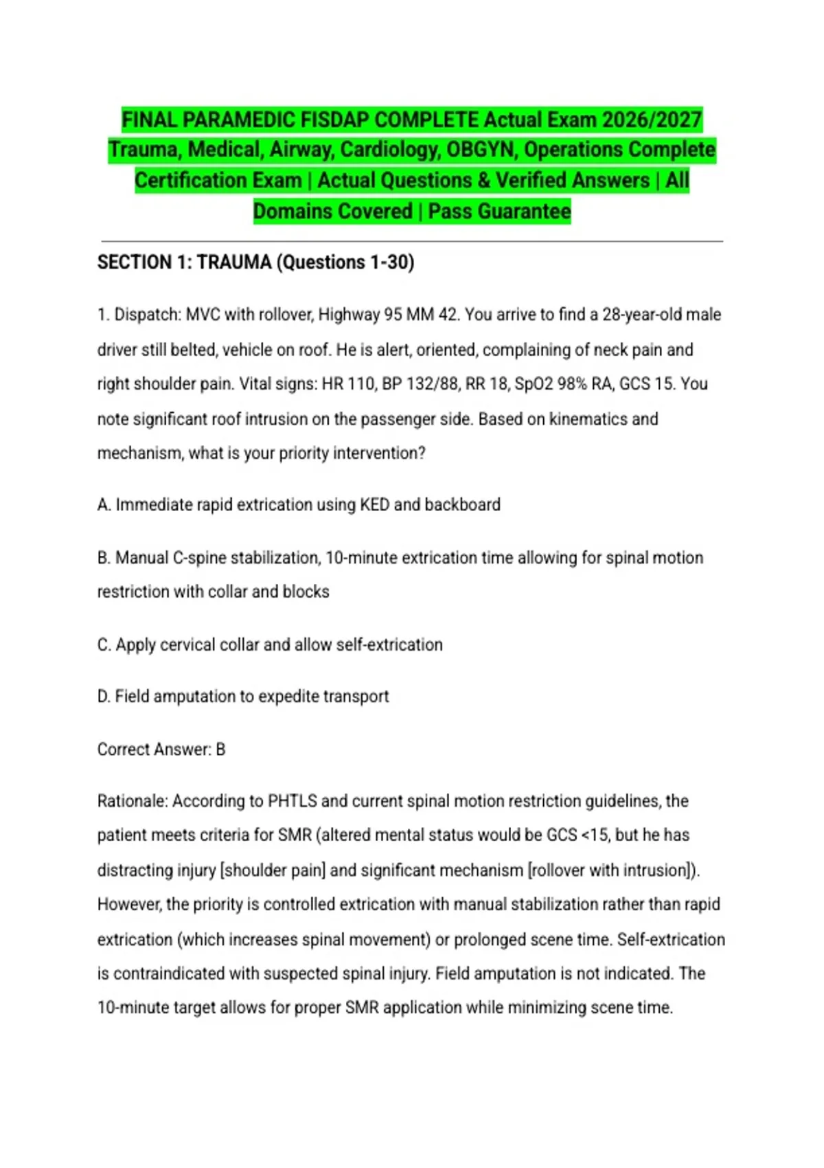 FINAL PARAMEDIC FISDAP COMPLETE Actual Exam 2026/2027
