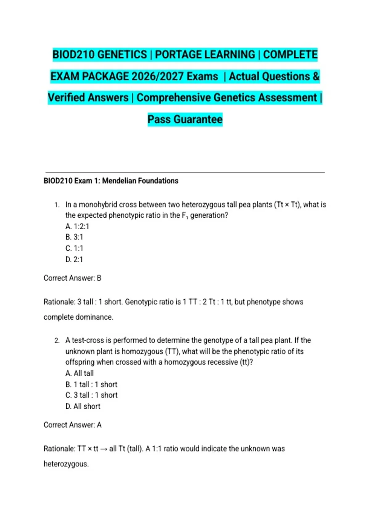 BIOD210 GENETICS | PORTAGE LEARNING | COMPLETE