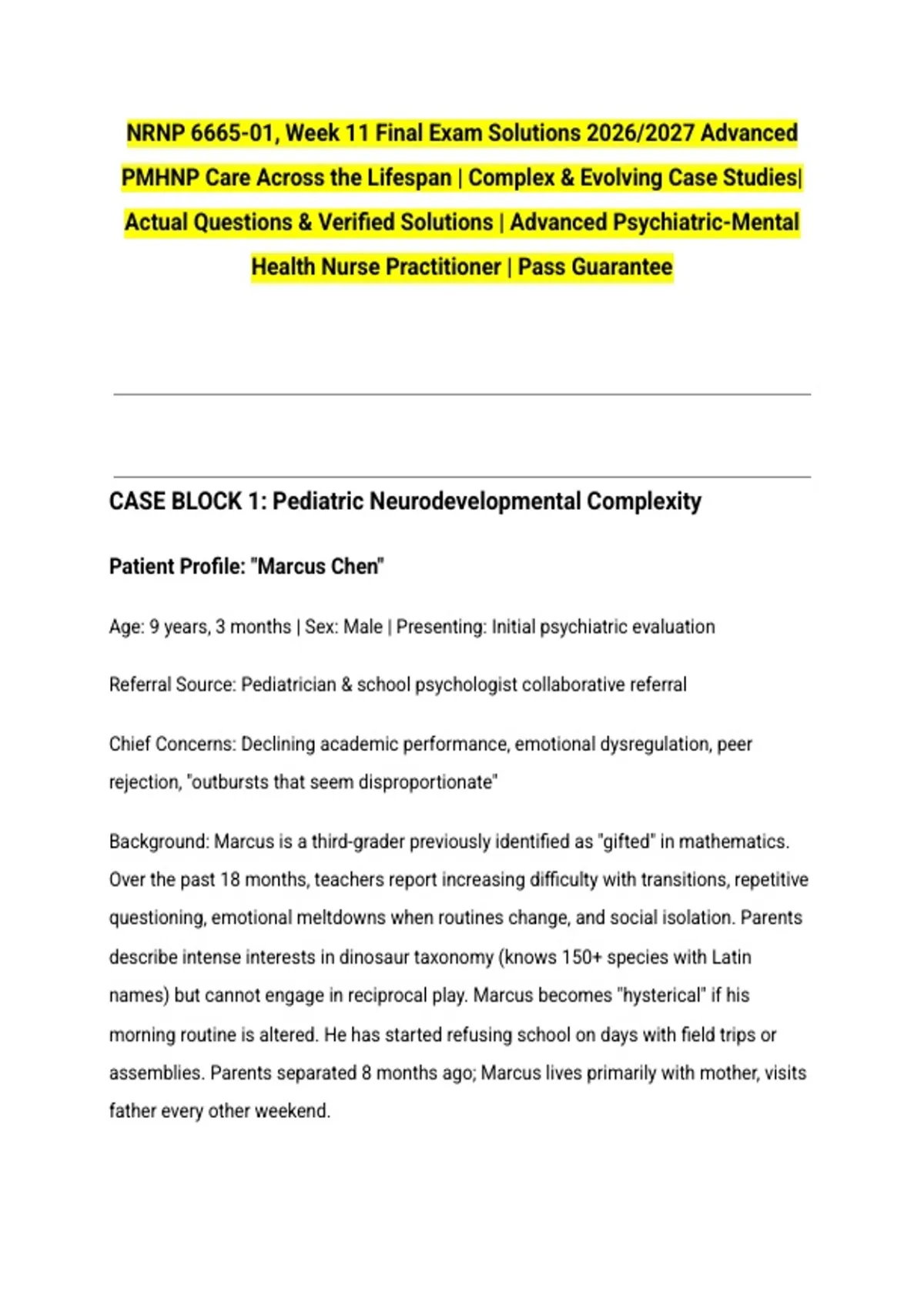 NRNP 6665-01, Week 11 Final Exam Solutions 2026/2027 Advanced