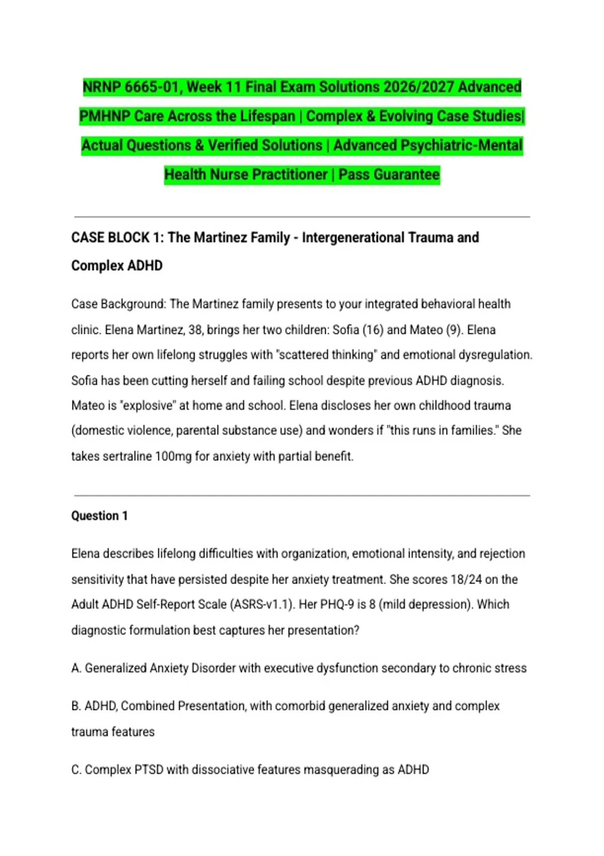 NRNP 6665-01, Week 11 Final Exam Solutions 2026/2027 Advanced