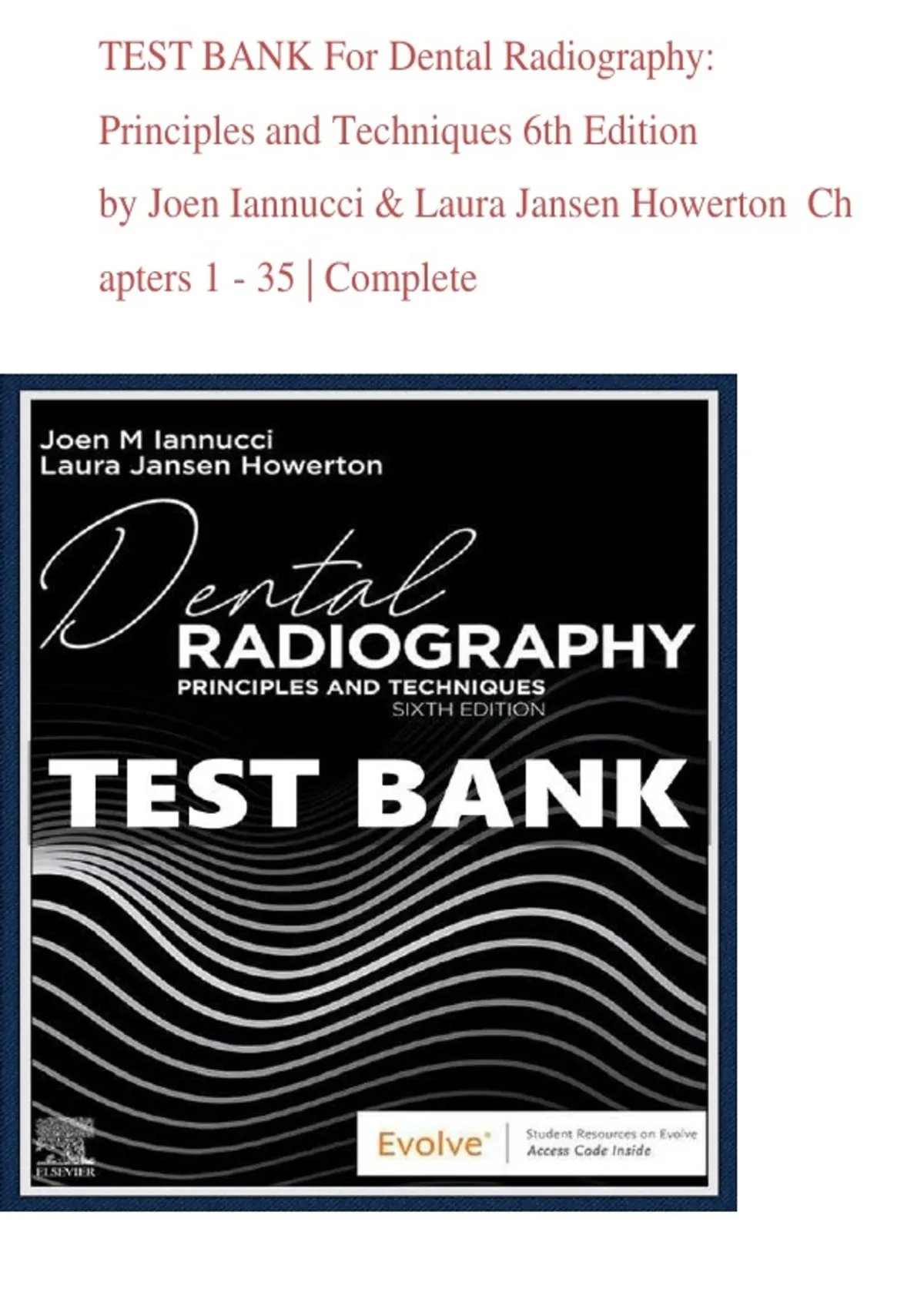TEST BANK For Dental Radiography: Principles and Techniques 6th Edition by Joen Iannucci & Laura Jansen Howerton, Verified Chapters 1 - 35, Complete Newest Version