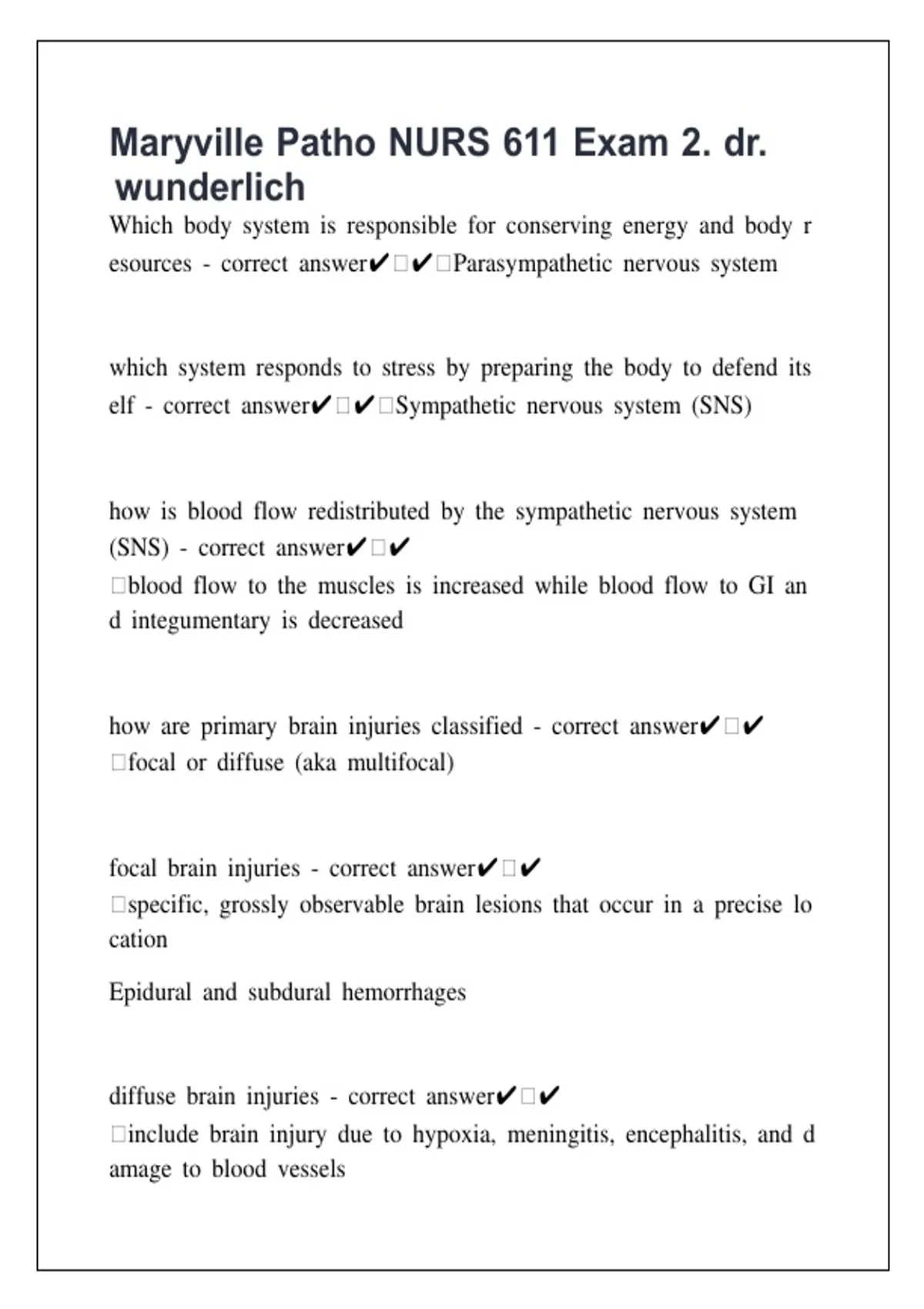 Maryville Patho NURS 611 Exam 2. dr. wunderlich Questions With Complete Solutions