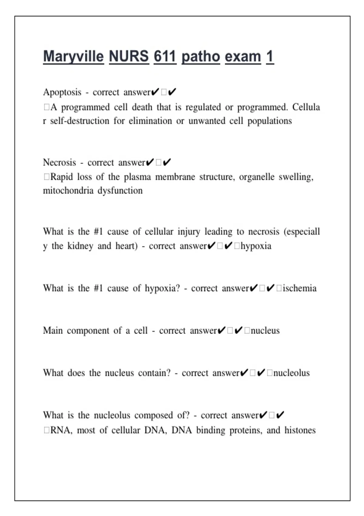 Advanced Pathophysiology (NURS 611) – Maryville University – Exam 1 Study Guide (2025/2026) | Comprehensive Notes and Key Concepts