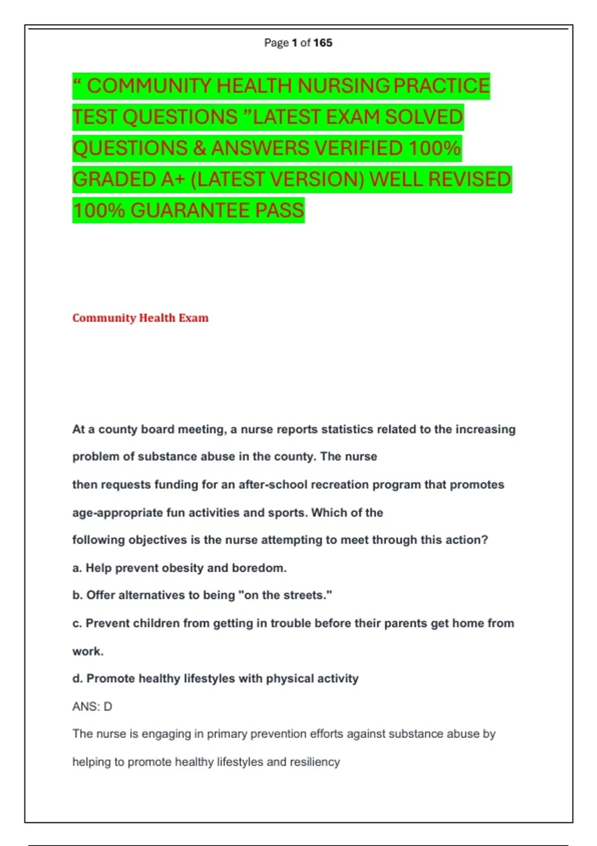 QUESTIONS & ANSWERS VERIFIED 100%
