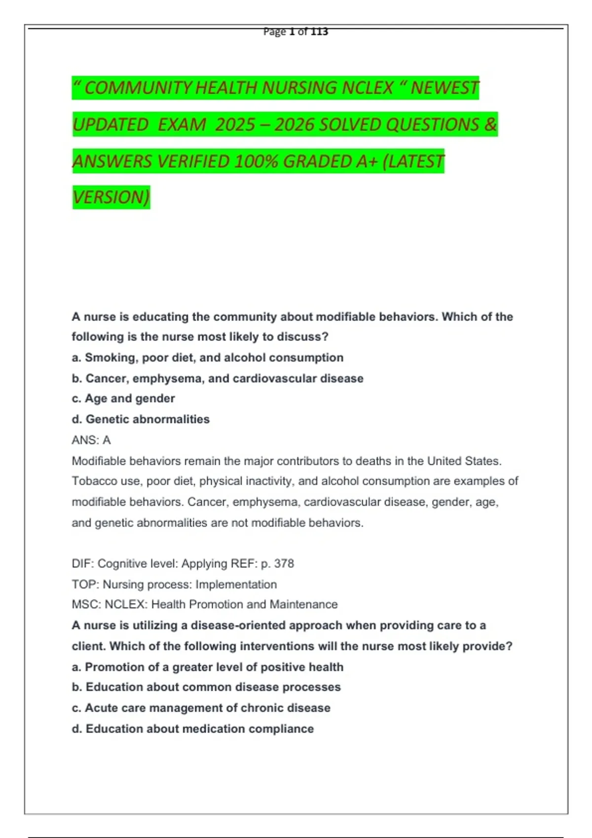 “ COMMUNITY HEALTH NURSING NCLEX “ NEWEST