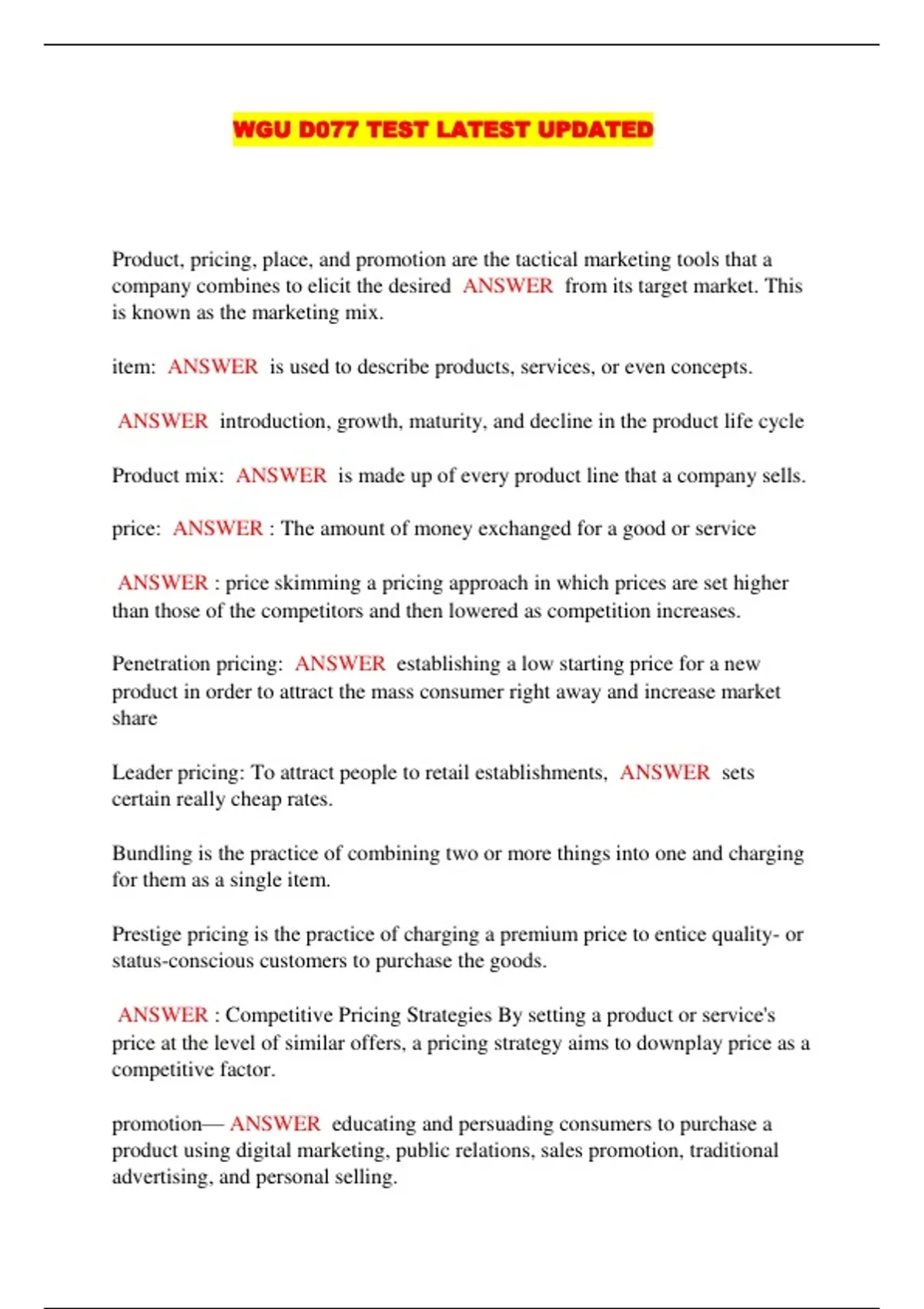 WGU D077 TEST LATEST UPDATED....