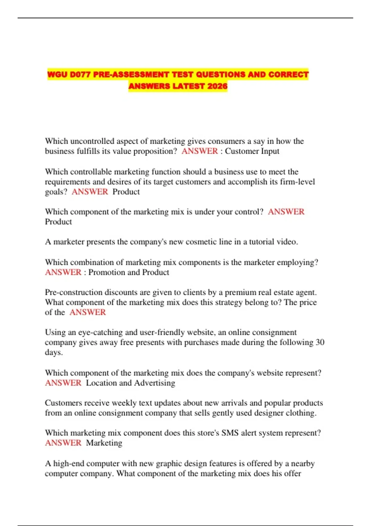 WGU D077 PRE-ASSESSMENT TEST QUESTIONS AND CORRECT ANSWERS LATEST 2026