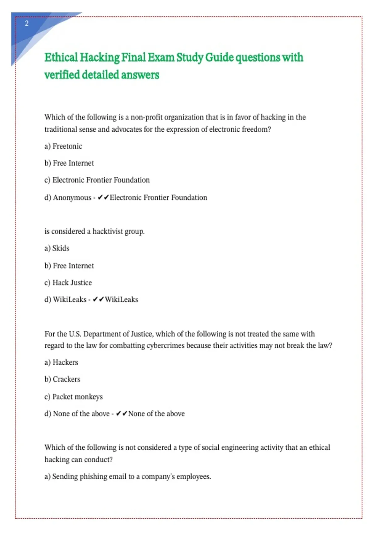 Ethical Hacking Final Exam Study Guide questions with
