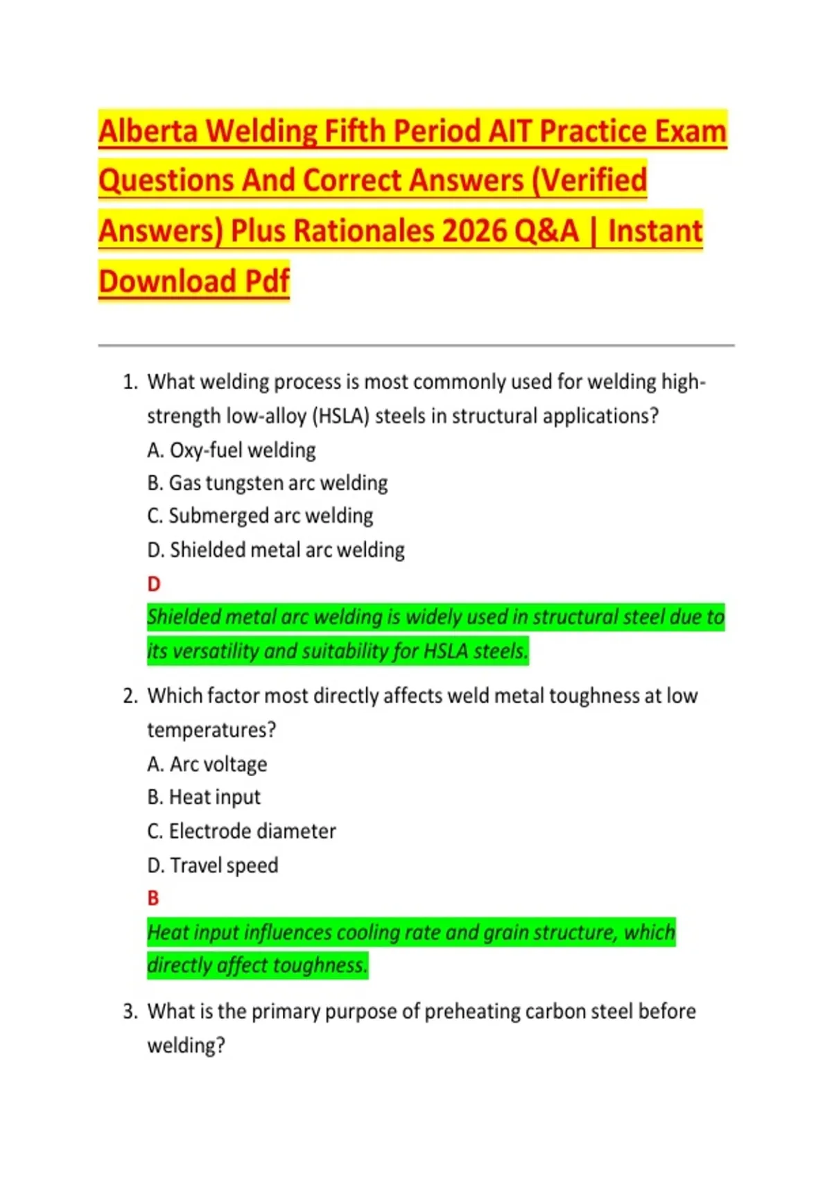 Alberta Welding Fifth Period AIT Practice Exam Questions And Correct Answers (Verified Answers) Plus Rationales 2026 Q&A | Instant Download Pdf